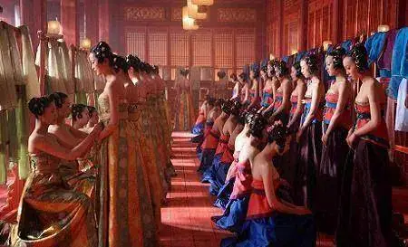 唐朝后宫陪侍御寝的顺序,是按照月圆月缺来制定的,与周大同小异。每月的前十五日为渐满,后十五日为渐缺,所以从初一到十五就由地位低的轮到高的,十六到月底前则反由地位高的轮到地位低的,皇后及四夫人有优先权,九嫔以下则“九九而御”,即每九个人共同承恩一夜。