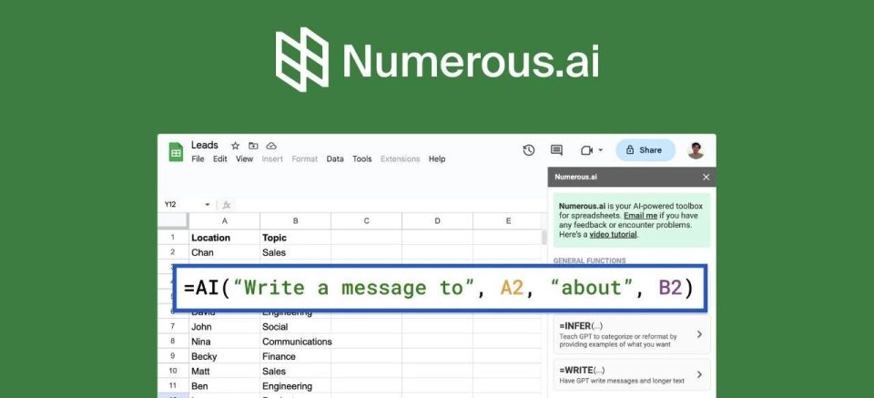 在此期间,Walz 与 Mehran 将一款 GPT-3 Google Sheets 插件发展为正经产品Numerous.ai。这款产品能让企业用户直接在表格里调用大语言模型,上线没多久就实现正向现金流,商业转化能力直接拉满。
