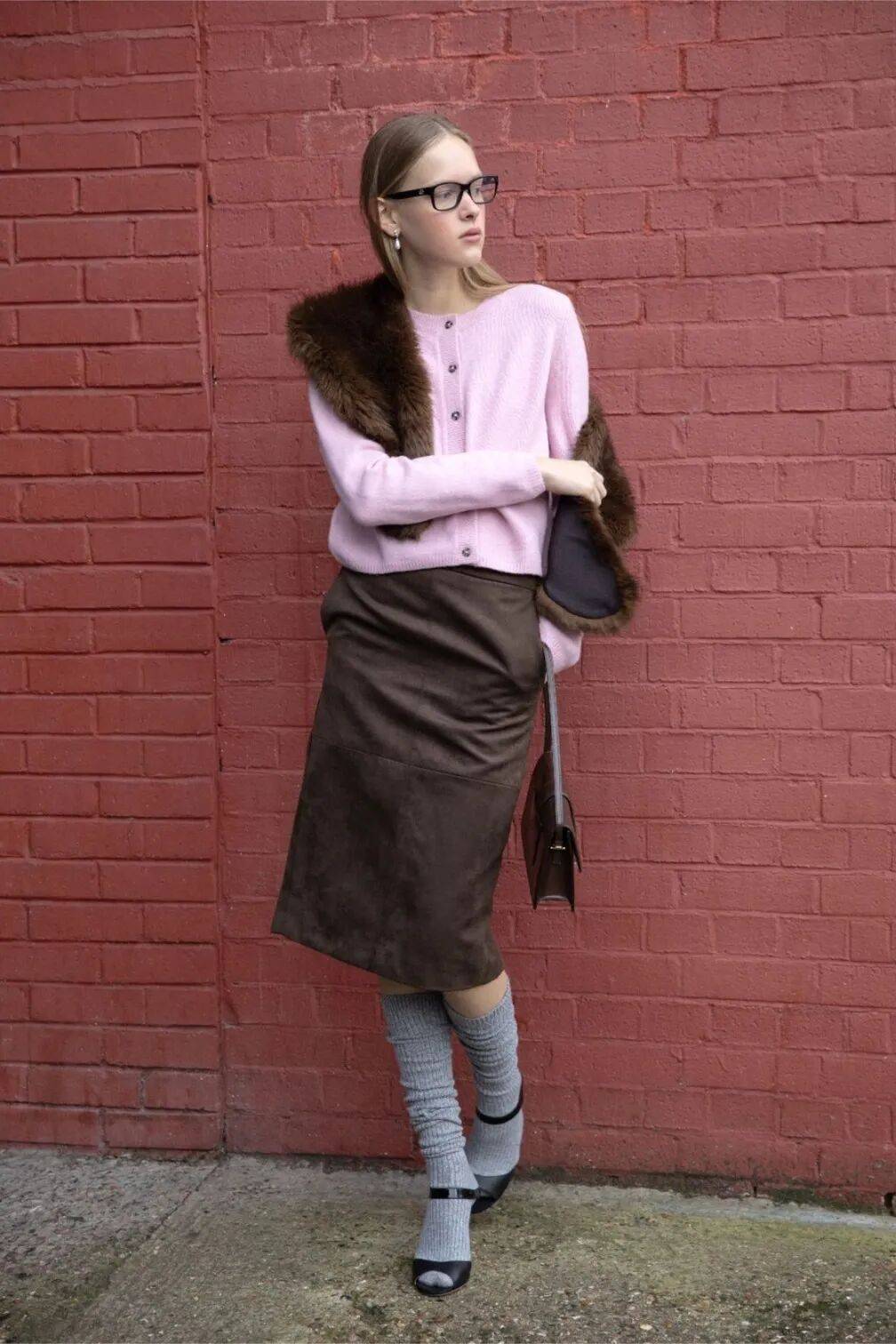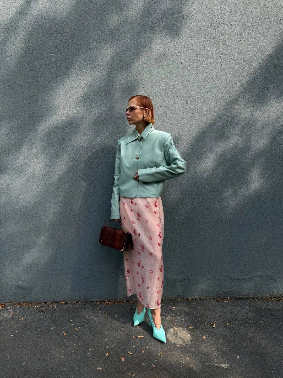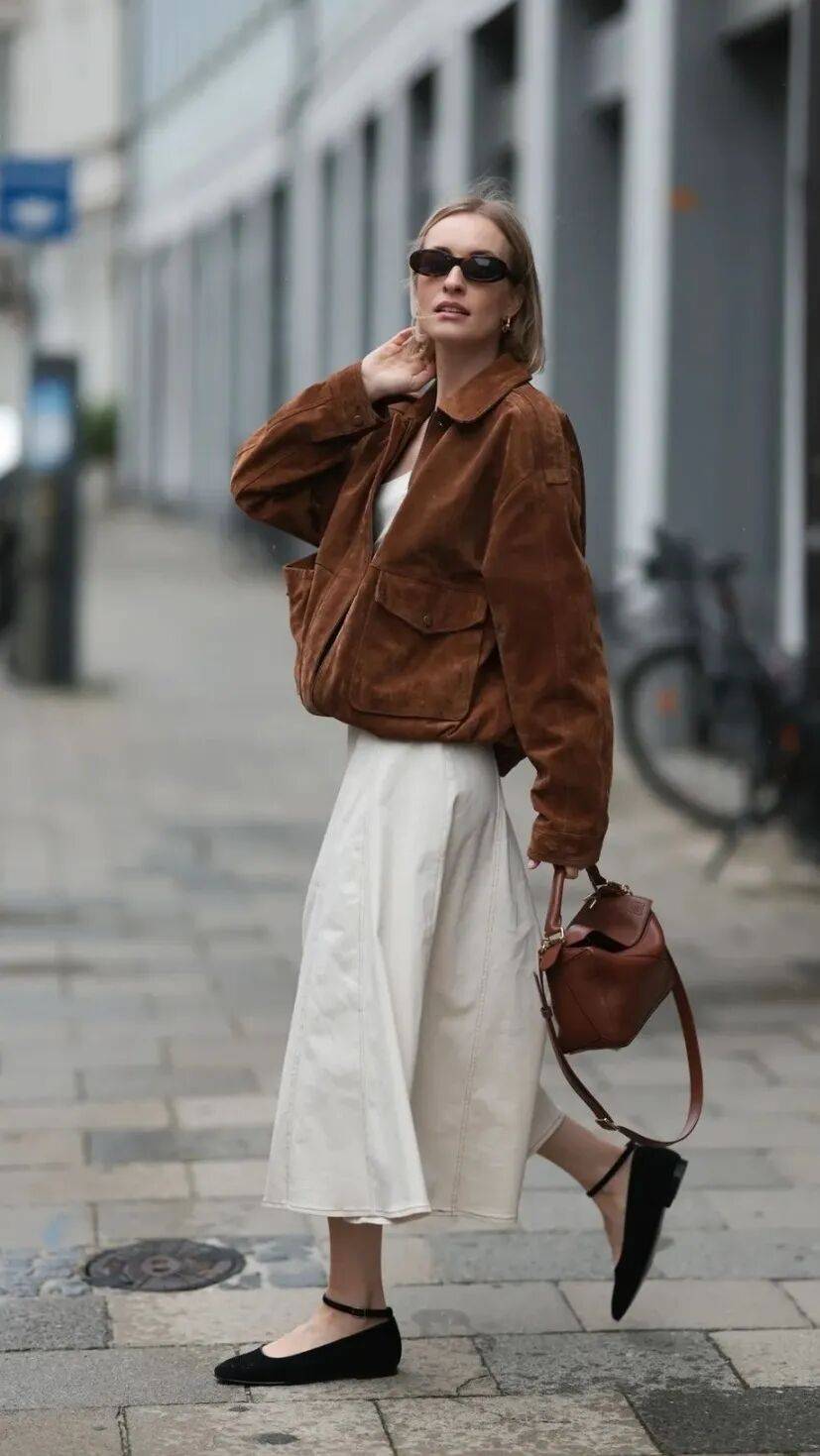但尖头鞋也有自己的性格。搭配蓬松的A字裙摆或百褶裙时,它收敛起锋芒,与裙身的柔美融成一片复古的、温和的雅致。