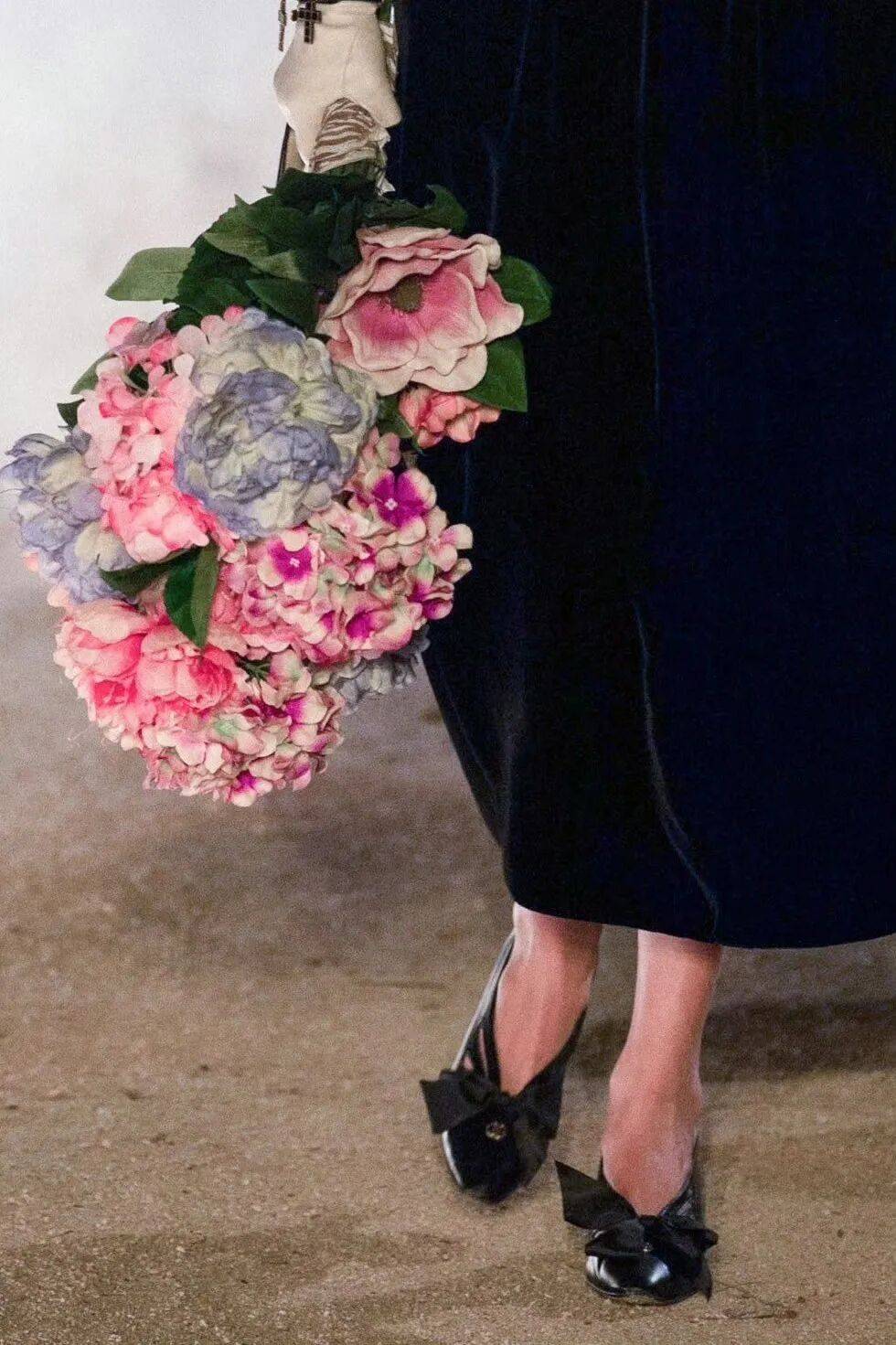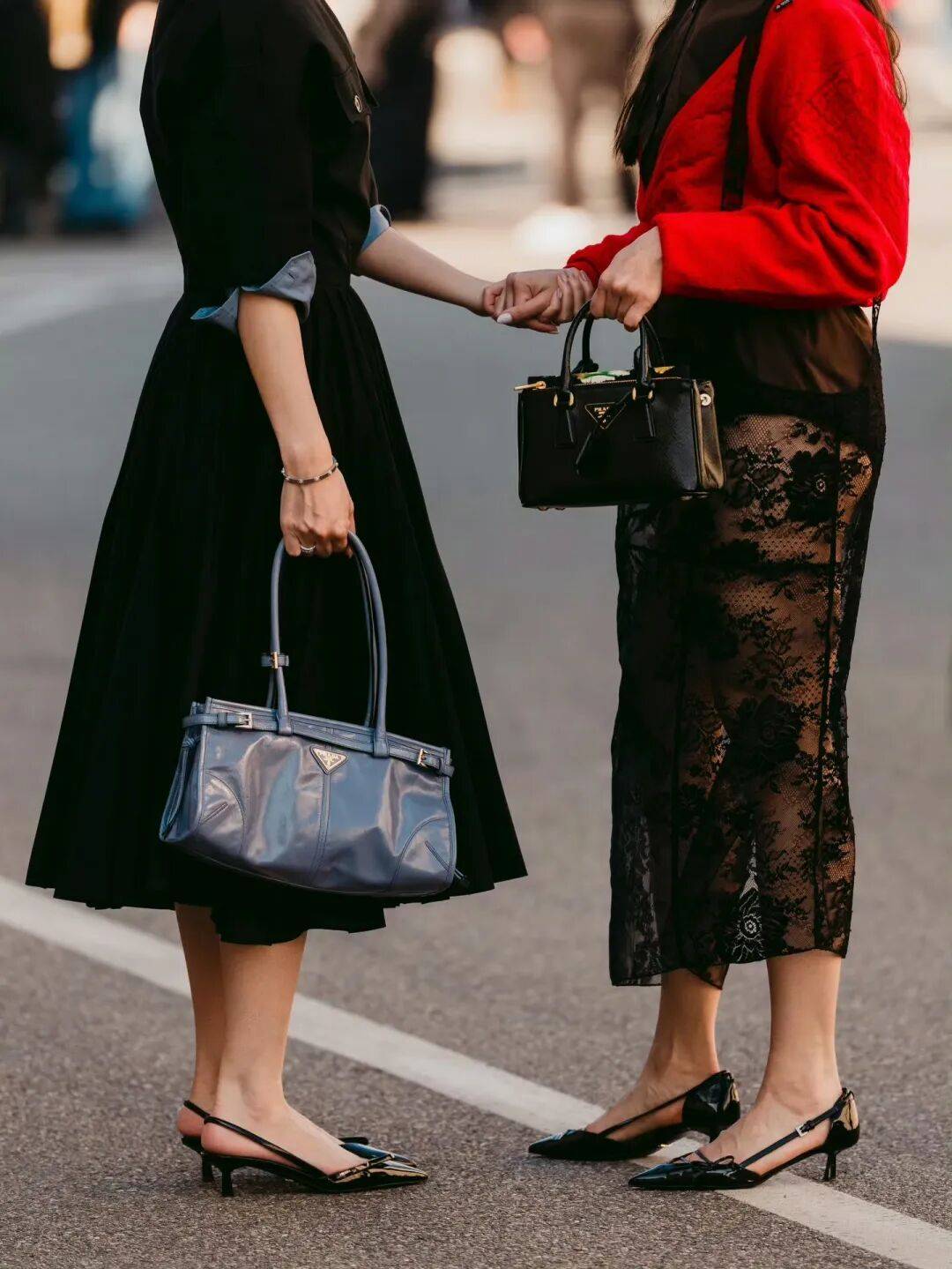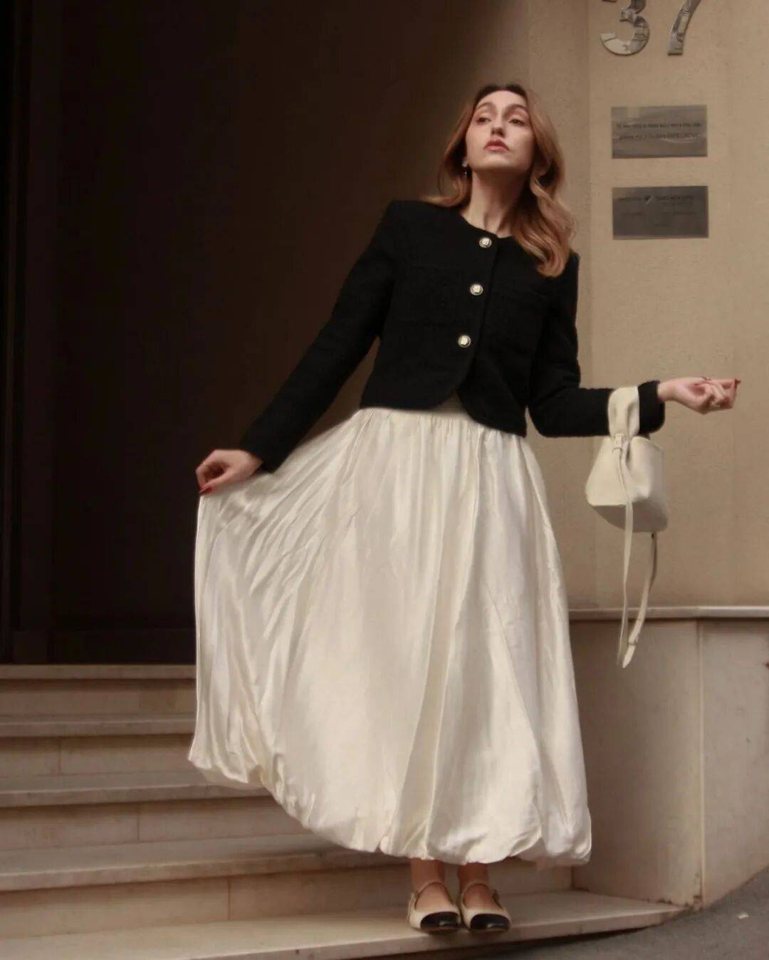 但尖头鞋也有自己的性格。搭配蓬松的A字裙摆或百褶裙时,它收敛起锋芒,与裙身的柔美融成一片复古的、温和的雅致。