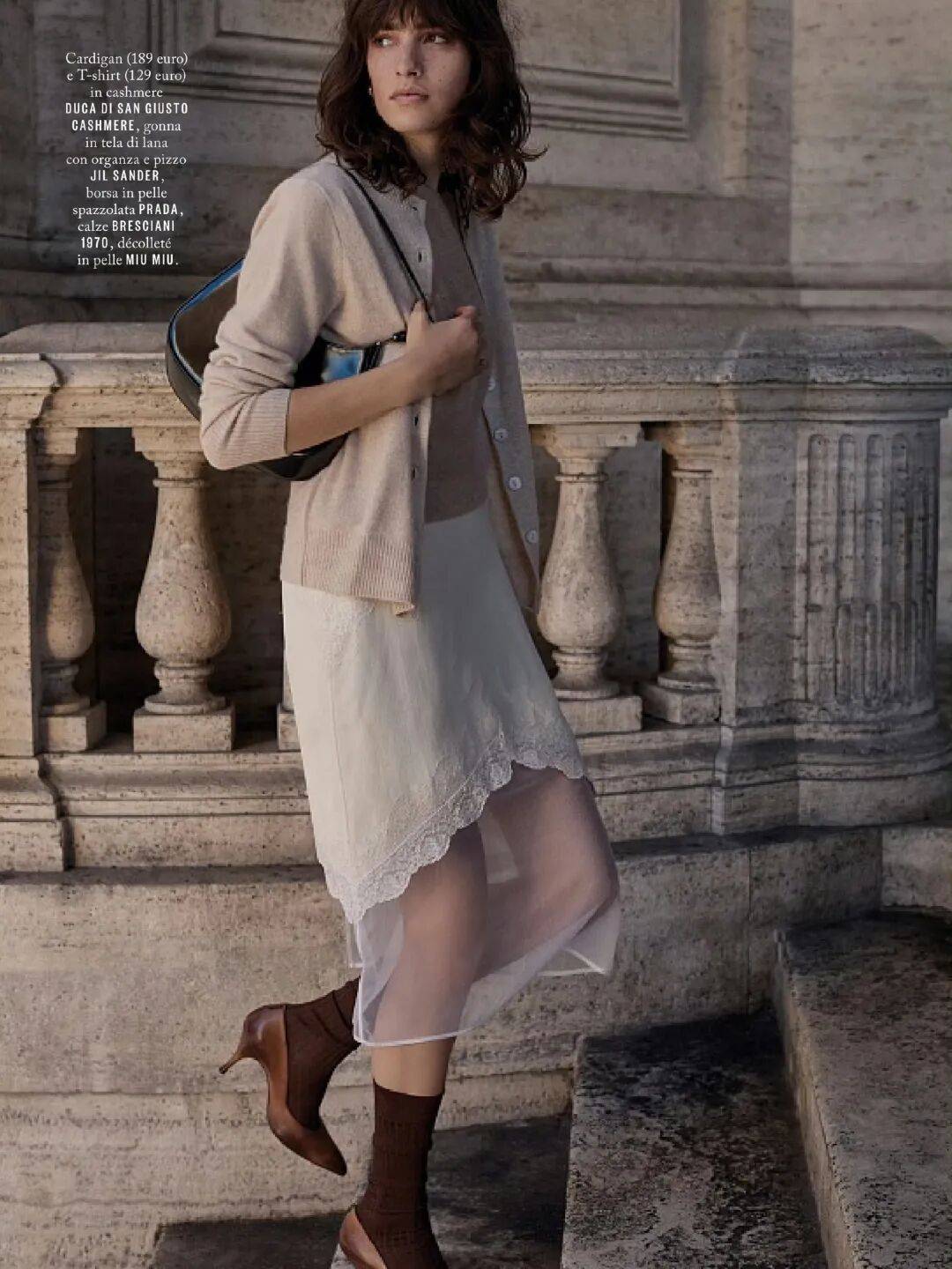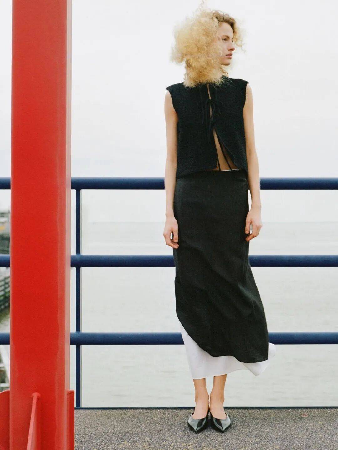 迷笛裙的优雅,需要尖头鞋来成全。那一道锐利的鞋尖,将视线顺势延伸,让裙摆之下的脚踝显得愈发纤细。