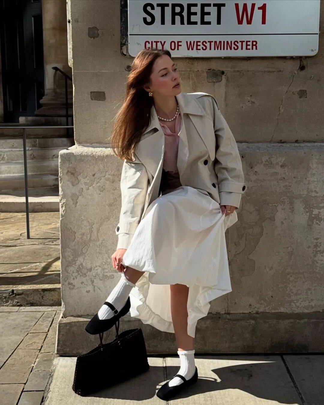 黑色玛丽珍鞋是最稳妥的选择,无论搭配印花裙还是纯色裙,都能稳稳接住复古的基调。
