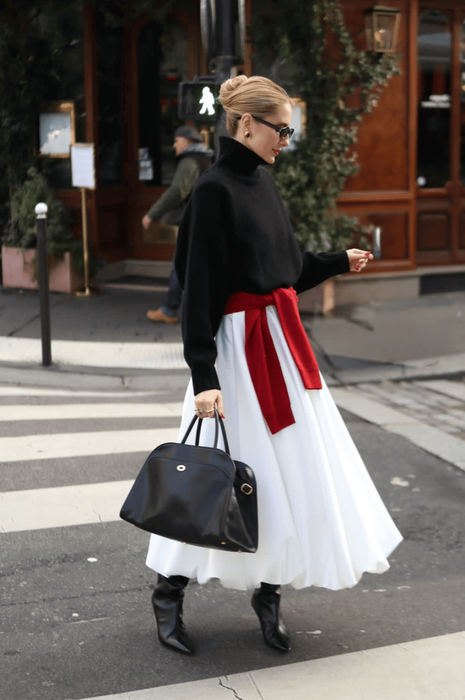 所谓迷笛裙,指的是长度恰好盖过膝盖、停留在小腿与脚踝之间的中长裙。