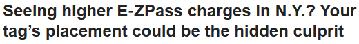 如果你发现自己的E-ZPass通行费突然上涨,原因可能是你的电子标签安装位置不正确。
