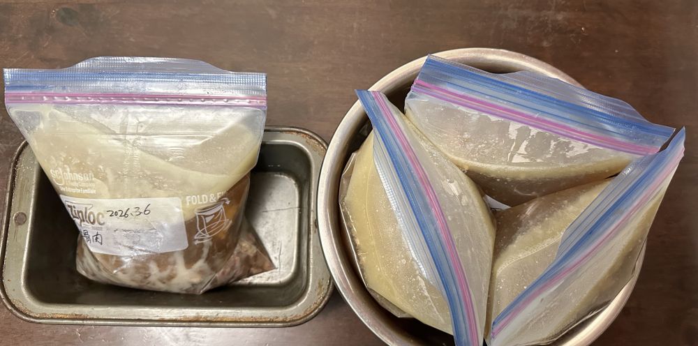 5 肉连汤冻上4袋,就是我家的预制菜,吃时加土豆或白萝卜,可好吃呢