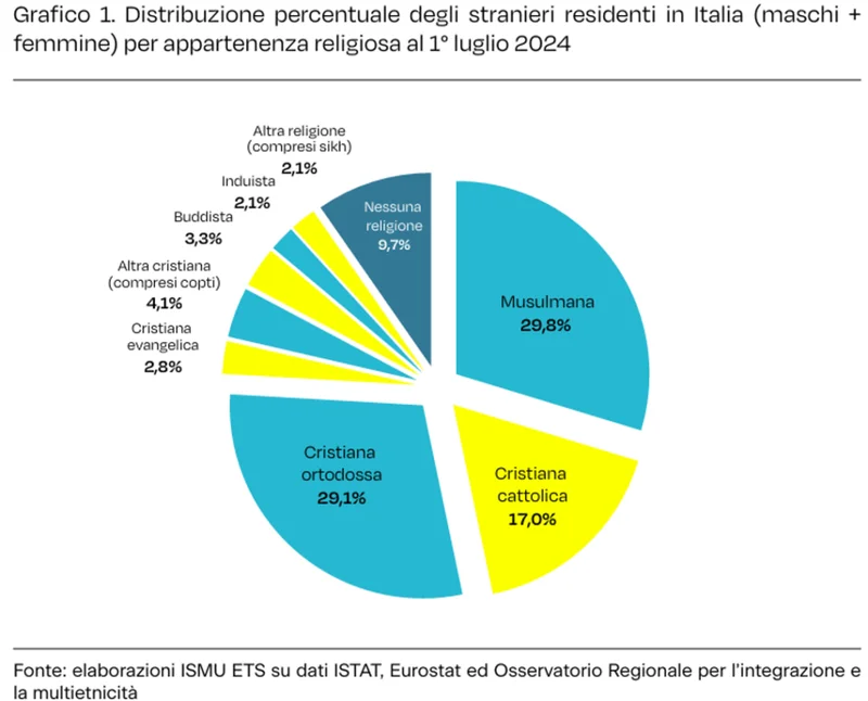 不过,一个常被忽视的事实是,在意大利的外国居民中,基督教信徒仍明显多于穆斯林。若将天主教与东正教信徒合并计算,基督教群体仍是外国人口中最主要的宗教群体。这一现象与来自以基督教为主的国家的大量移民有关,例如罗马尼亚、菲律宾以及拉丁美洲国家。