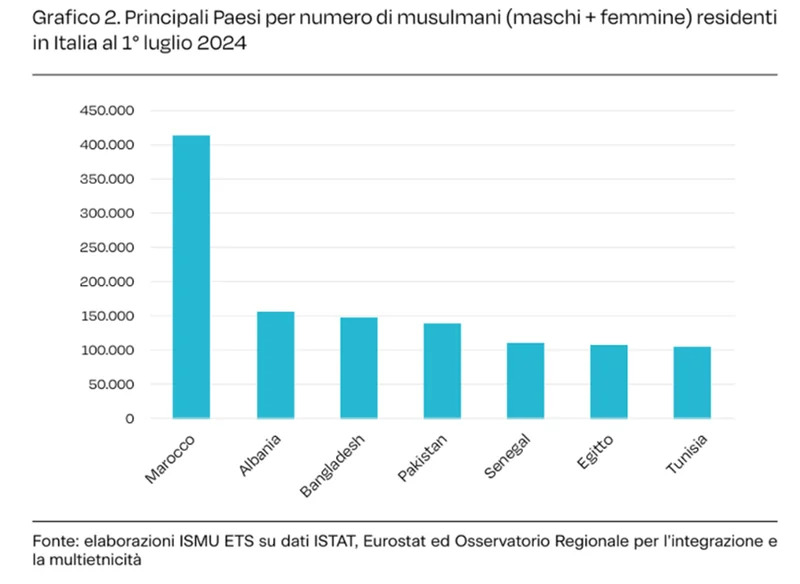 根据意大利多元种族研究促进基金会(Ismu)的估算,2024年,在意大利居住的外国人中,穆斯林约为170万人。