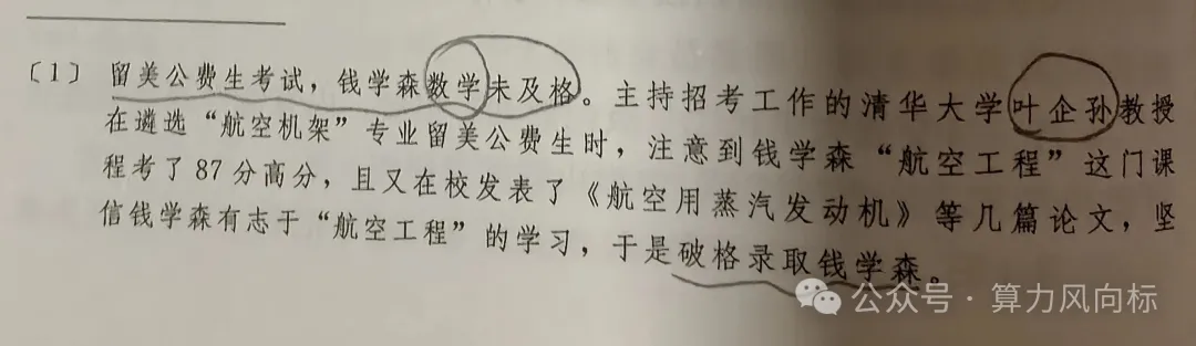 留美公费生考试,钱学森数学未及格。主持招考工作的清华大学叶企孙教授在遴选“航空机架”专业留美公费生时,注意到钱学森“航空工程”这门课程考了87分高分,且又在校发表了《航空用蒸汽发动机》等几篇论文,坚信钱学森有志于“航空工程”的学习,于是破格录取钱学森。