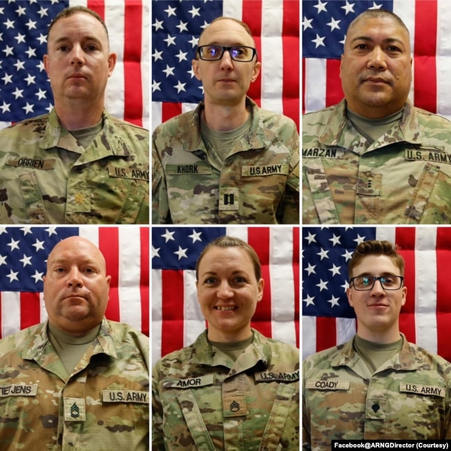 美国战争部确认牺牲的六名美国军人分别是来自艾奥瓦州西得梅因的20岁中士德克兰·科迪(Declan Coady);来自明尼苏达州白熊湖39岁一级军士妮可·阿莫尔(Nicole Amor);来自佛罗里达州温特黑文的35岁上尉科迪·霍克(Cody Khork);来自内布拉斯加州贝尔维尤的42岁一级军士诺亚·蒂特延斯(Noah Tietjens);来自加利福尼亚州萨克拉门托的54岁三级准尉罗伯特·马赞(Robert Marzan)以及来自艾奥瓦州印第安纳波利斯的45岁少校杰弗里·奥布莱恩(Jeffrey O’Brien) 。