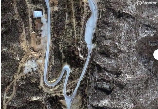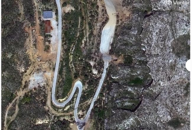 打击前,公路右边土地凸起。