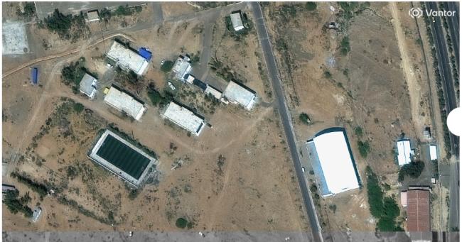 上图是空袭前在伊朗东南部阿曼湾恰巴哈尔市一处军事设施卫星图片。下面的卫星图像显示阿曼湾恰巴哈尔市这处军事设施内的多栋建筑受损,图像上已经被抹掉。