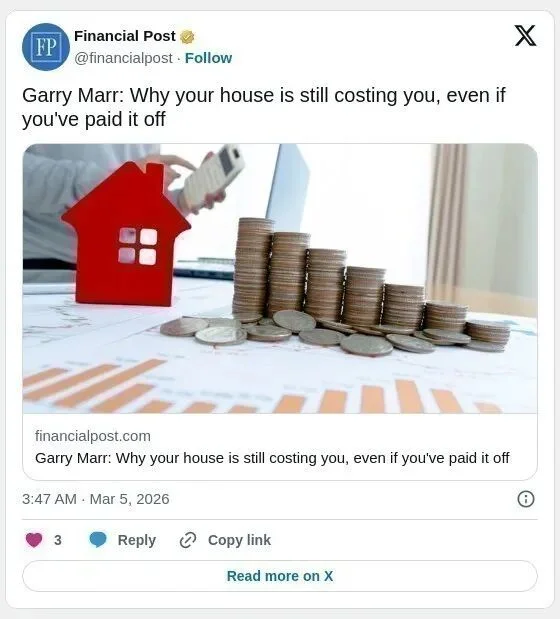 在加拿大,住房往往是普通家庭拥有的最大资产。然而,随着房价增长放缓甚至下跌,越来越多的经济学家和市场人士指出:即便房贷已经还清,拥有一套住房也绝非“没有成本”。