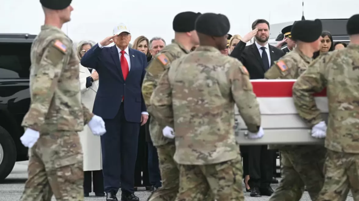 美国总统特朗普为六名在科威特阵亡的美军士兵举行悼念仪式。这些士兵在美伊冲突期间丧生,其遗骸随后被运回美国。