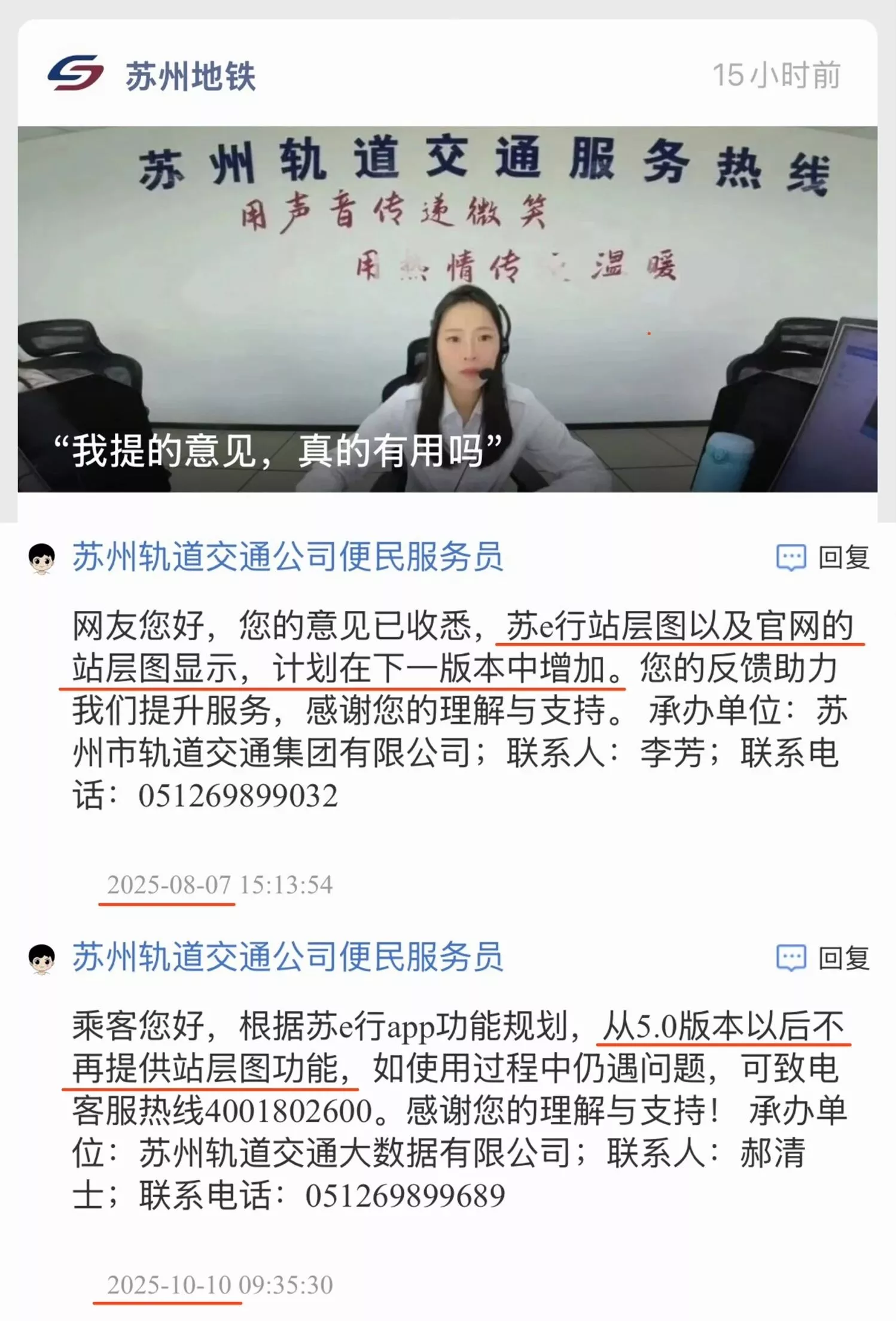 苏州地铁官方微信前不久发文,标题为:“我提的问题,真的有用吗?”