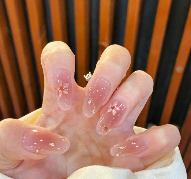 与以往强调繁复贴钻或浓郁色彩的款式不同,这一季值得关注的趋势回归到了更本质的表达----以淡色为基调的新中式美甲。
