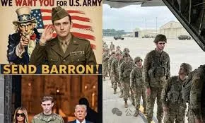#SendBarron的标签像野火一样烧遍X、TikTok等社交平台,连纽约哥伦布广场的抗议人群都举着醒目标牌齐声喊:“让巴伦去前线!”