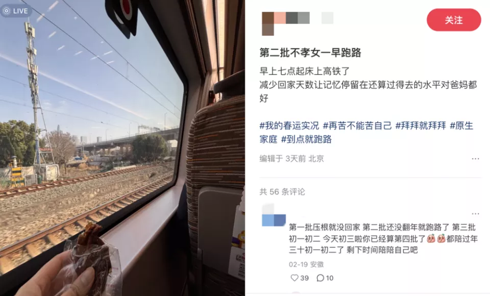 回想过年那几天,社交平台上的热闹充满了诡异的气氛,铺天盖地都是哪怕买硬座站票也要连夜跑路的年轻人。
