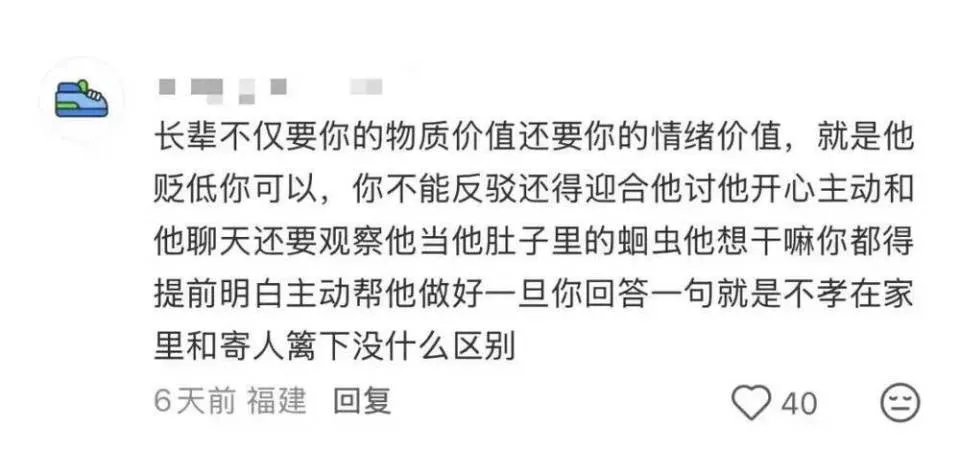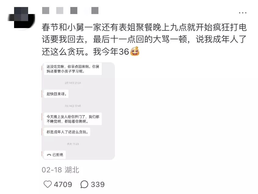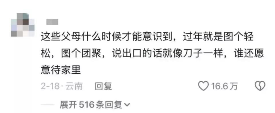 有人是36岁的成年人,还要被父母唠叨“晚上没有按门禁时间回家”;有人独自在外打拼多年,一回到家里还是要被批评“走路要挺胸收腹”;有人刚下地铁站,就被要求给父母60万首付,都多余出高铁站,不如直接原地买张票掉头就走。