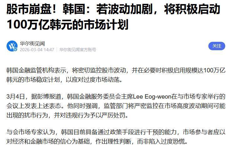 但是没想到,美国和伊朗打到现在,伊朗还没有崩溃,首先居然是我们的邻居崩了。韩国股市更是直接两天熔断,汇率更是直接创历史新高,当日股市更是一度大跌近13%左右。当下韩国更是直接宣布拿出100万亿韩元救市,中东危机,第一个崩溃的国家已经出现了吗?