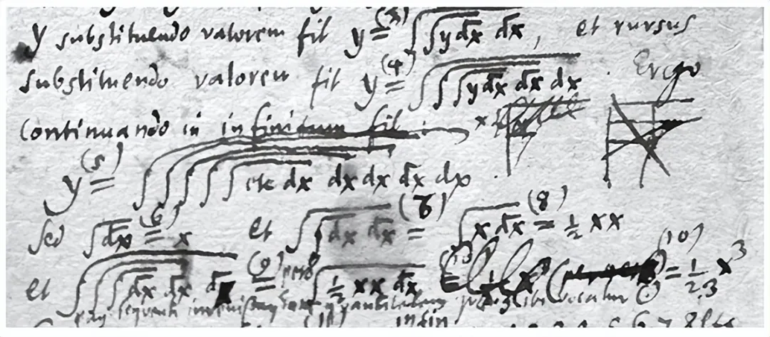 戈特弗里德·威廉·莱布尼茨本是外交官兼哲学家,在数学家惠更斯指导下,痴迷于曲线的切线问题。1675年一个雨夜,他在手稿边缘写下:“用∫表示‘和’(拉丁文summa)将是有用的。”拉长的S成为积分符号,dx表示微分。