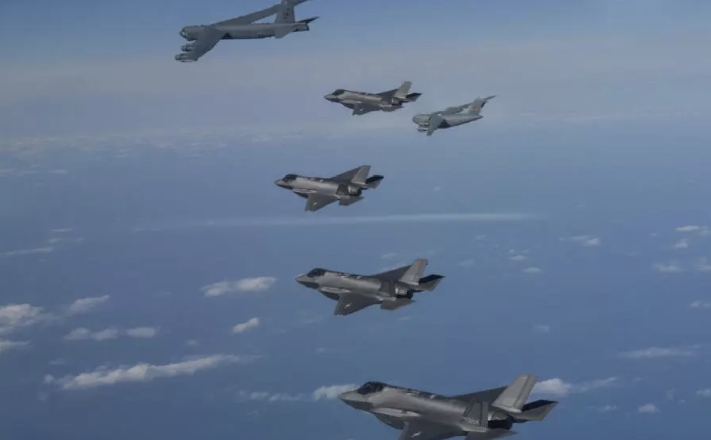 2023年10月22日美军与韩军军演资料图,演习中包括一架C-17运输机 REUTERS - THE DEFENCE MINISTRY