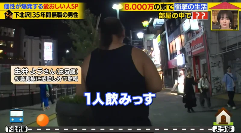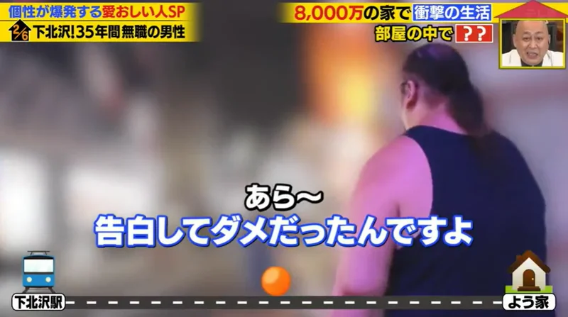 这位35岁的大哥名叫生井よう,住在下北泽站附近。路过一家柏青哥店时,生井告诉工作人员,这里面有一个非常可爱的工作人员,自己曾试过跟他/她告白,但是失败了。