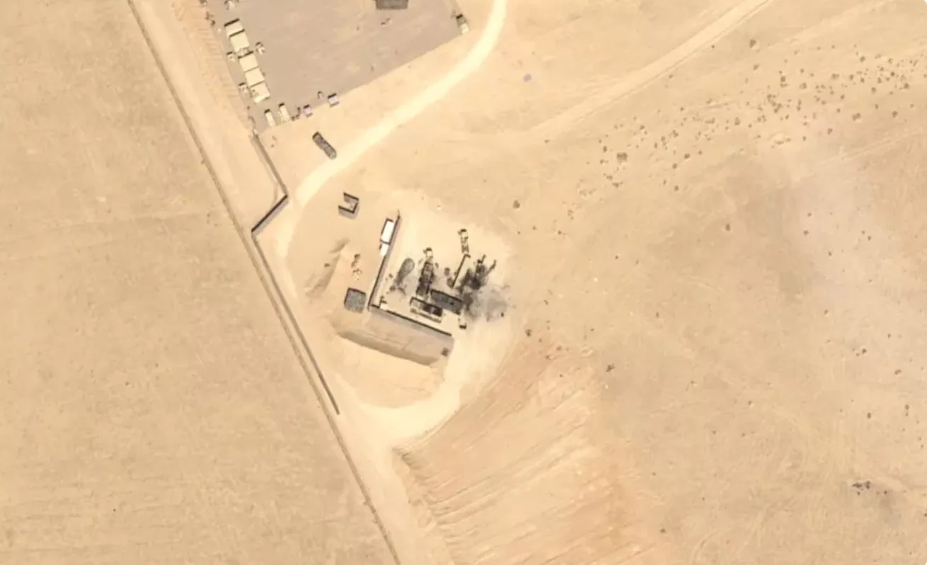 2026年3月7日,美国与以色列向伊朗发动的大规模袭击进入第七日之际,有卫星图像显示,在美以对伊朗发动空袭的最初数日,位于约旦的美国“萨德”(THAAD)导弹防御系统的雷达系统遭到攻击,似乎已被摧毁。图为约旦穆瓦法克萨尔蒂空军基地3月2日被拍下的卫星图线,可见清楚的黑色弹坑。(网络图片)