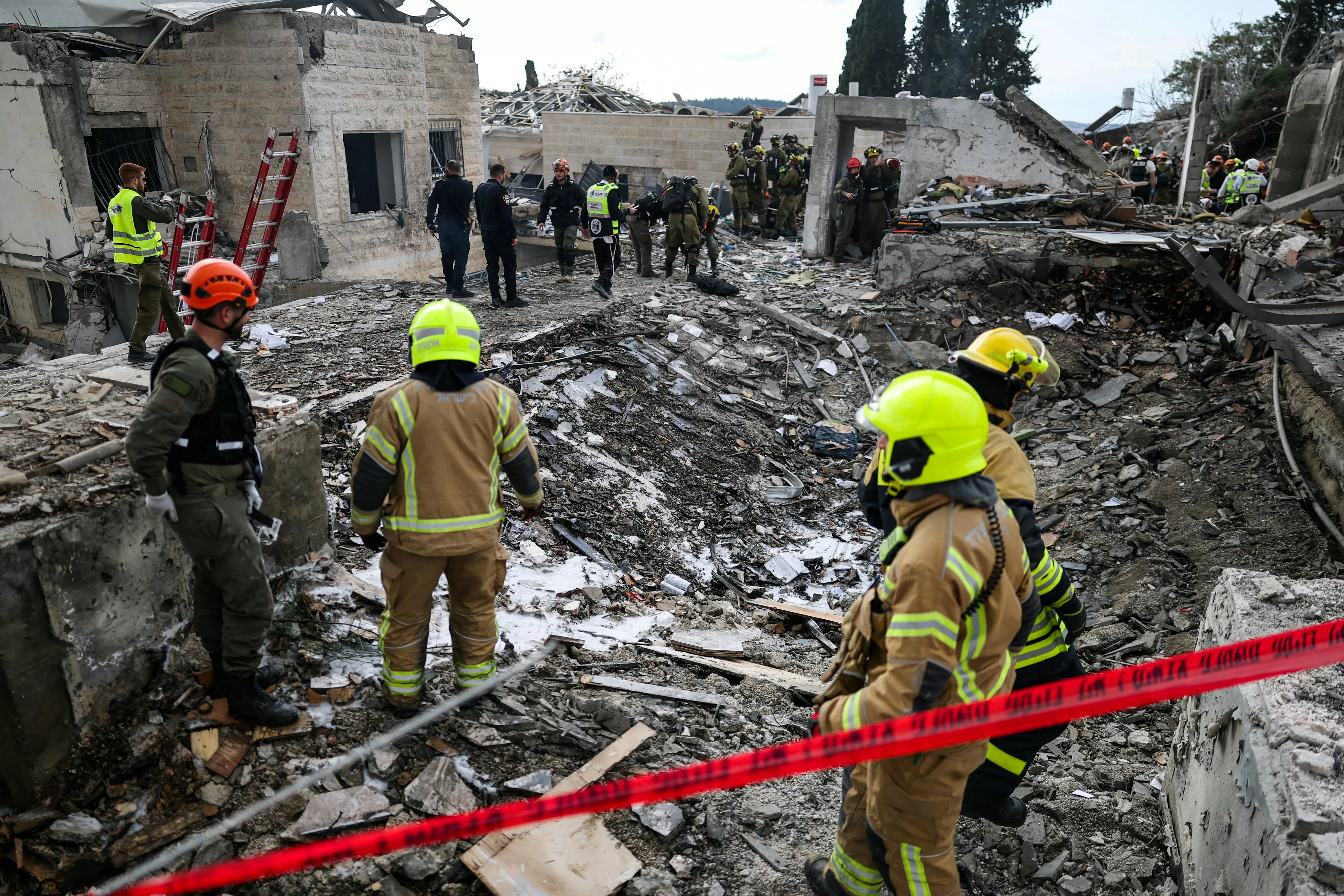 2026年3月1日,在以色列贝特谢梅什,伊朗发动导弹轰炸后,紧急人员正在伊朗空袭现场工作。(Reuters)