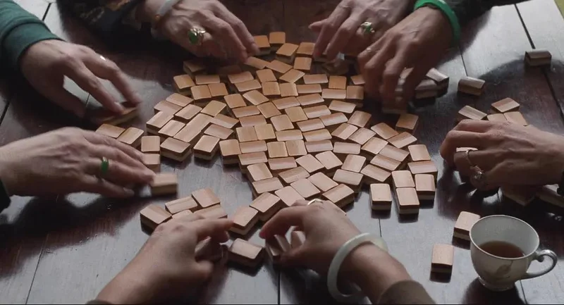 1989年出版的美国畅销小说《喜福会》,其名“喜福会”就是个麻将会的名称,由日本侵略之际逃到桂林的女性商议成立,她们定期聚会、轮流坐庄,用和牌的快乐来暂时忘却战期楚痛。在其中一位女性辗转到达旧金山后,喜福会传袭原来的传统,还把她们在美国长大的女儿也吸纳进来,渴望在牌局中缓和因文化冲突而紧绷的代际关系,“用无形的谋略穿透女儿,设法教会她中国人的性格”。