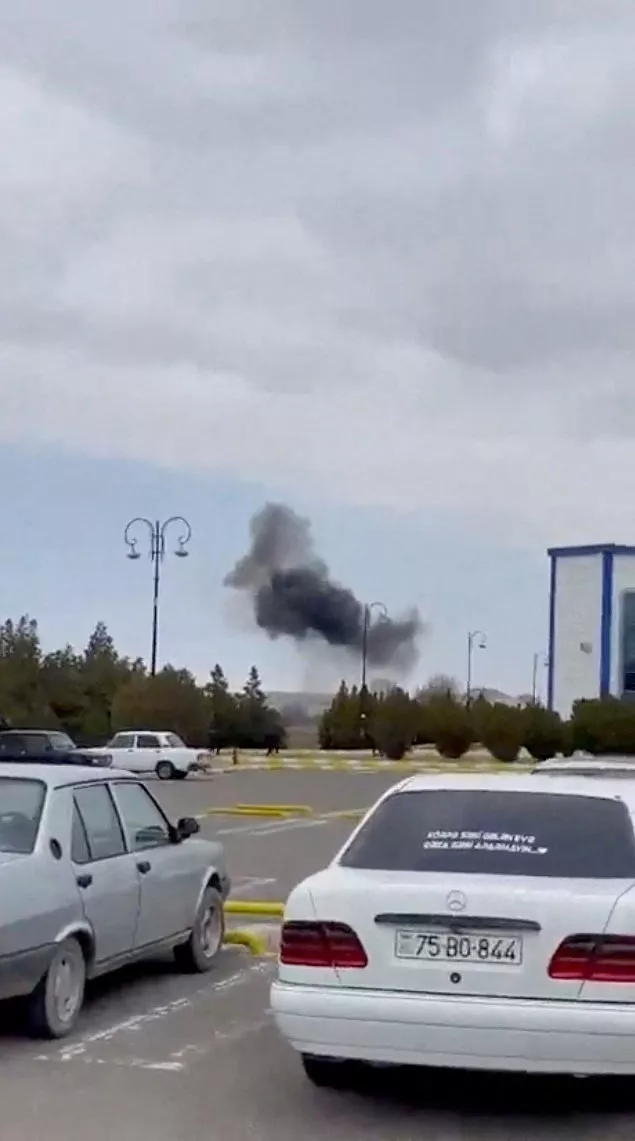 伊朗无人机飞到阿塞拜疆,在阿塞拜疆飞地纳希切万(Nakhchivan)的机场附近爆炸,当地起火冒烟(Social Media/via REUTERS)