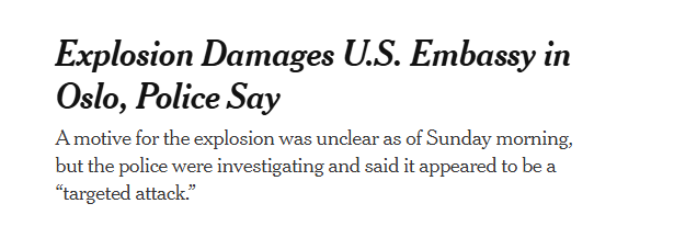 美国驻挪威大使馆发生爆炸Yumi