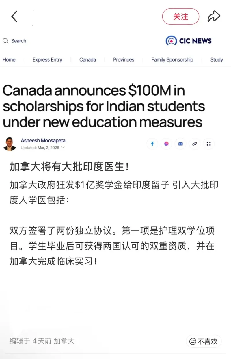加国砸1亿给印度留子学医,华人炸了小红书APP