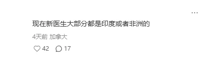 有网友直言:“现在新医生大部分都是印度或者非洲的。” 这句话也印证了印度医疗从业者正在成为加拿大医疗体系的重要组成部分。