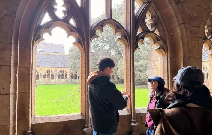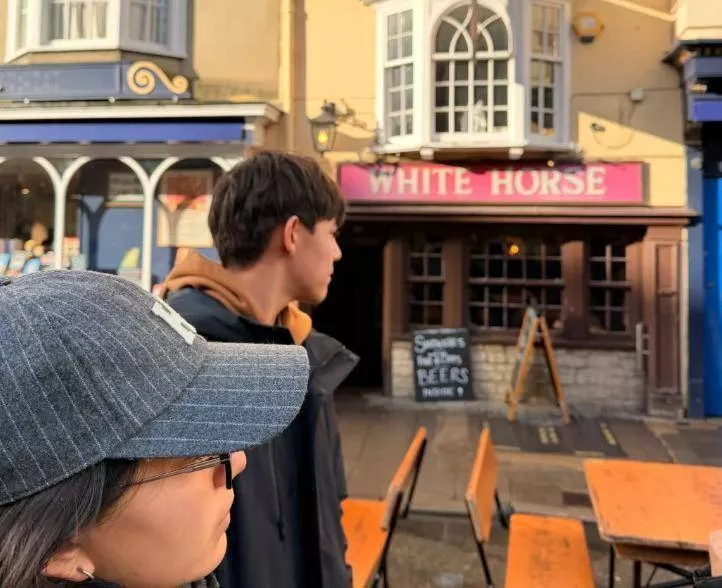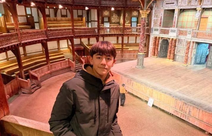 照片拍摄于英国,安娜带着诺一和霓娜参观了莎士比亚环球剧场和牛津大学等文化地标。画面中的诺一穿着黑灰色羽绒服搭配橘色卫衣,双手插兜站在博物馆走廊,身高已经明显超过了母亲安娜,接近父亲刘烨186cm的身高,甚至被网友估算已直逼190cm。他的面部轮廓清晰,隐约可见少年初长成的胡茬,眼神沉稳,与《爸爸去哪儿》时期那个软萌卷发的小男孩判若两人。