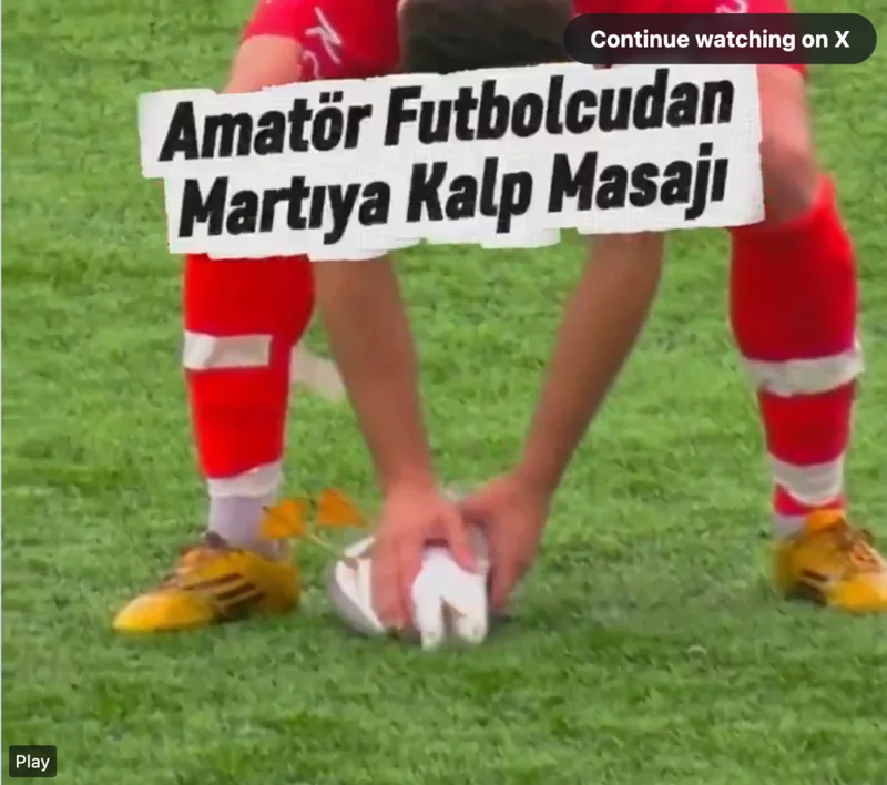 整整将近两分钟,他跪在球场中央,专注地按压着这只鸟的胸腔。裁判跑过来,手足无措地呼叫场边支援。
