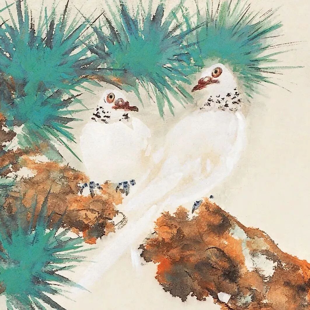 应该说明的是,他笔下的禽鸟姿态并不拘于如实的写生,都是经过适度艺术的夸张和变异的。其禽鸟形象看似自然而稳妥,其实与真实禽鸟差异颇大,有些画中的高难动作已超越了真鸟的动作局限。