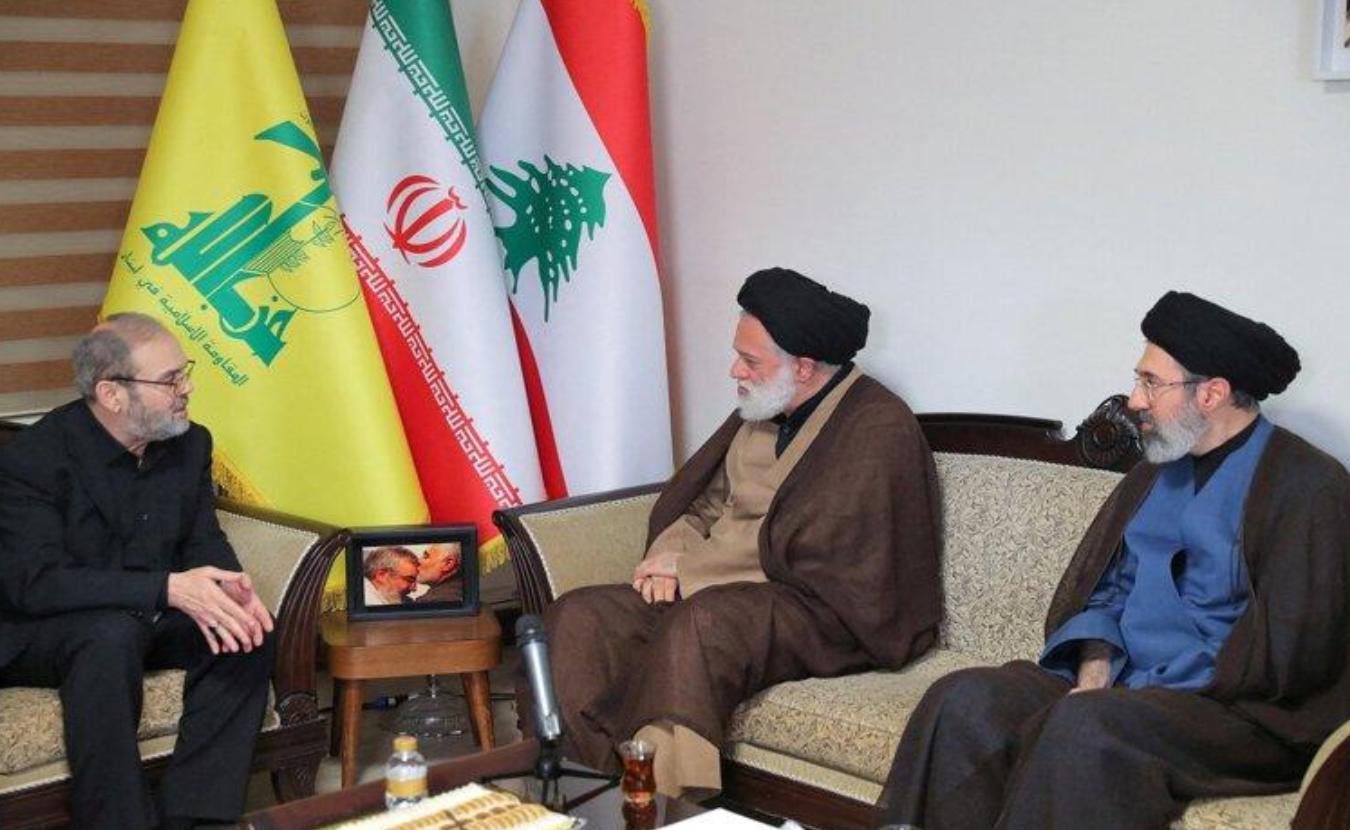 已故伊朗最高领袖哈梅内伊尔尼次子穆吉塔巴(右)是新任最高领袖的热门人选。 图为他前年10月在德黑兰的黎巴嫩真主党办公室。 (路透)