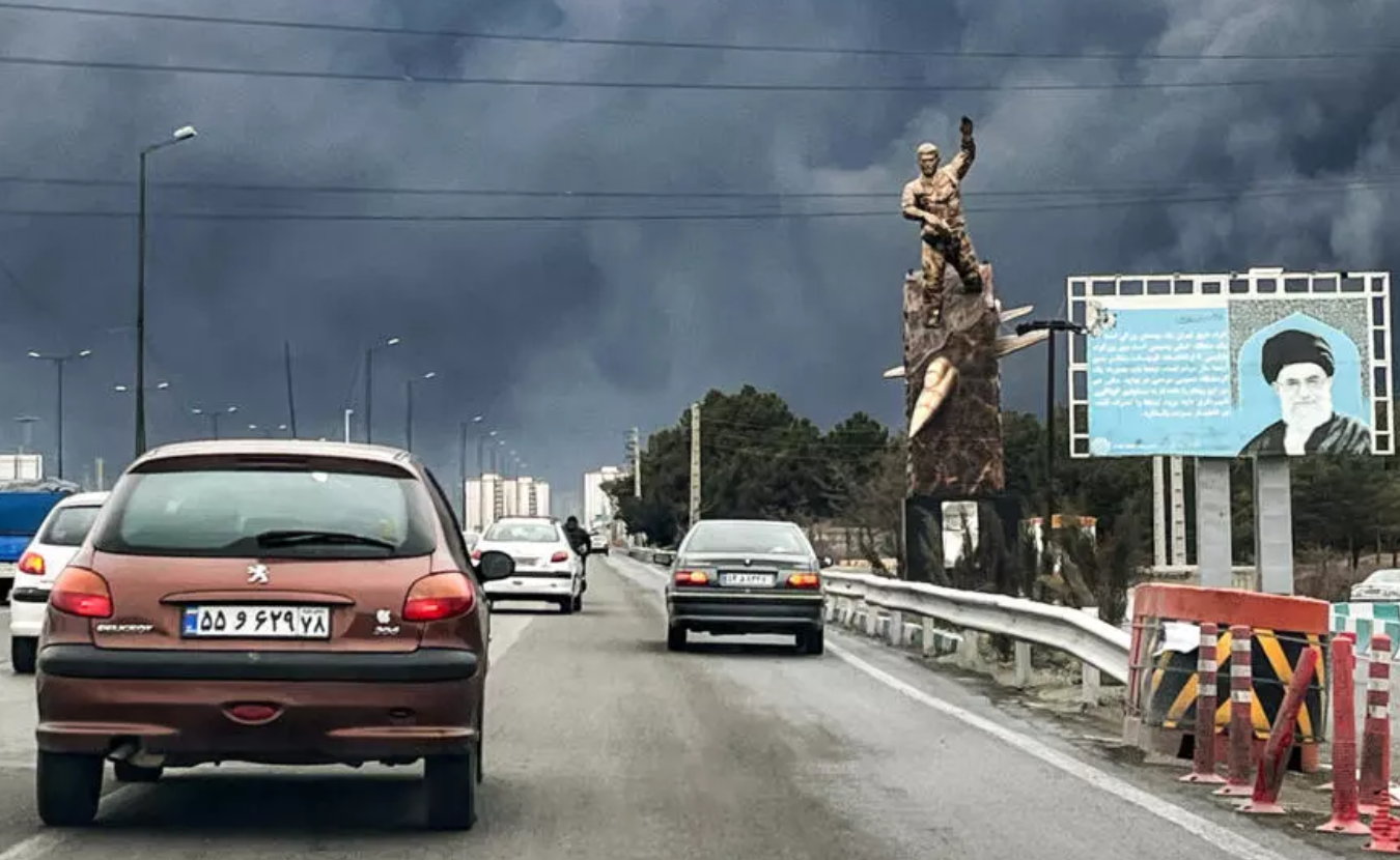 Des véhicules circulent sur une autoroute, passant devant une 2026年3月8日几座油库被炸后的德黑兰 AFP - -