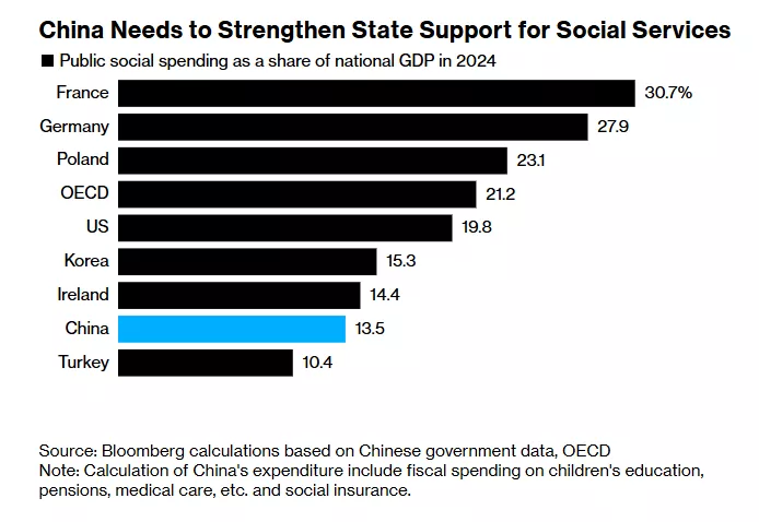 彭博的分析认为,随着人工智能威胁就业 、 通缩压力拖累经济增长,习近平可能最终被迫扩大中国的社会保障体系 。