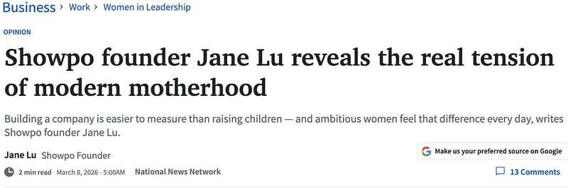 Jane Lu想告诉所有女性:真正的成功,不在于在野心和母亲身份之间做非此即彼的选择。你不必为了在一个角色中出类拔萃,就去贬低另一个角色的价值。