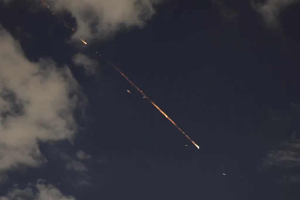 当地时间2026年3月8日,以色列特拉维夫,以色列防空系统拦截特拉维夫上空的伊朗弹道导弹弹体。(视觉中国)