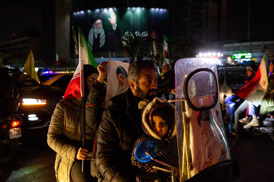 上周四,一个家庭抵达德黑兰参加悼念活动,悼念被美国和以色列空袭炸死的伊朗最高领袖阿亚图拉阿里・哈梅内伊。 Arash Khamooshi for The New York Times