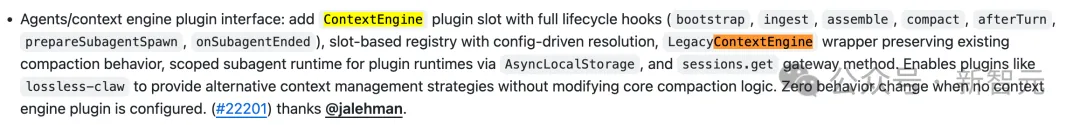 最重头的一条:ContextEngine插件接口上线。