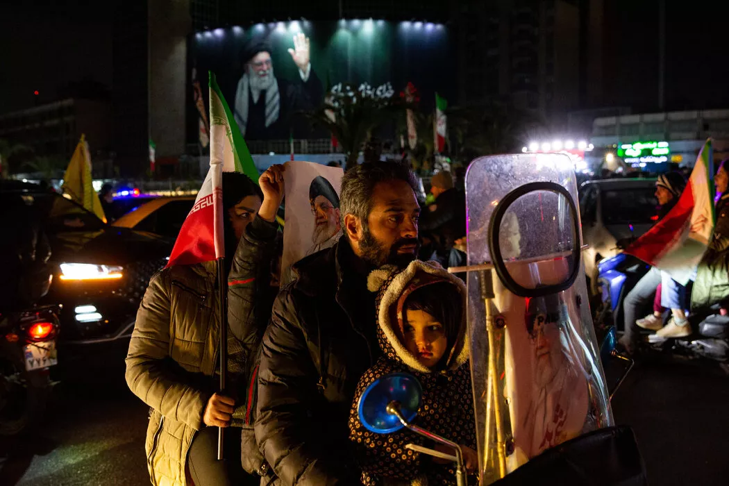 上周四,一个家庭抵达德黑兰参加悼念活动,悼念被美国和以色列空袭炸死的伊朗最高领袖阿亚图拉阿里·哈梅内伊。