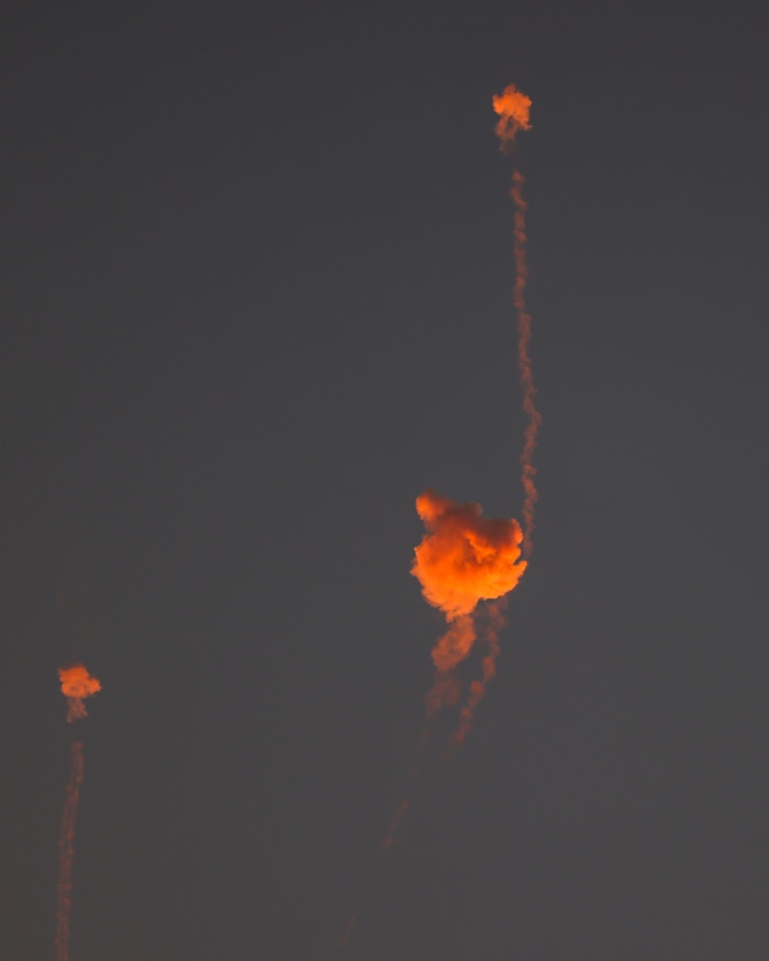 卡塔尔上空疑似发生导弹拦截,现场升起烟雾。图片来源:Yousef Masoud/Getty Images