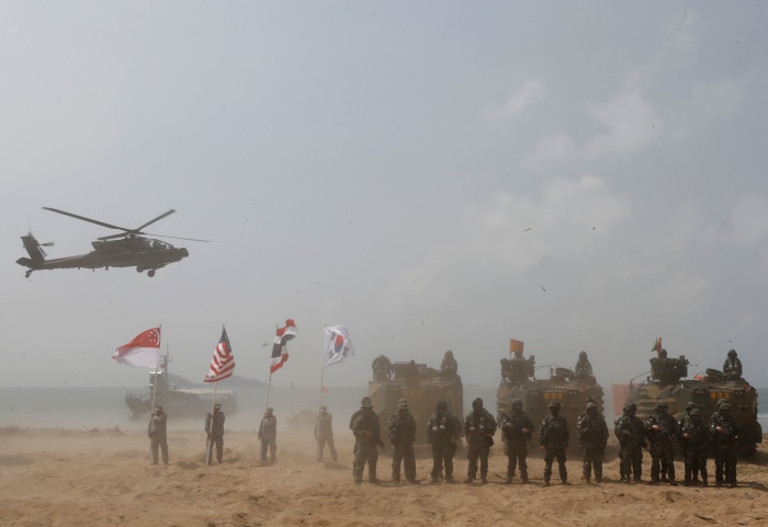 2月在泰国举行的一场由美军太平洋司令部与亚洲盟友参与的联合演习。图片来源:Narong Sangnak/EPA/Shutterstock