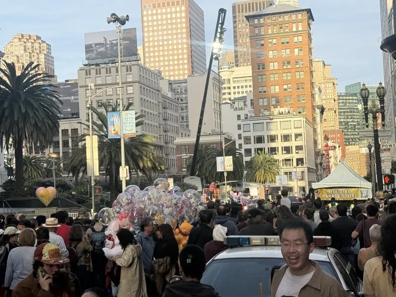 沿途观众人潮汹涌,不少家庭携带孩子提前数小时占位观看。游客与市民纷纷举起手机拍摄,街道两旁充满节庆气氛。许多观众表示,旧金山农历新年巡游已成为城市最具代表性的文化活动之一,每年都吸引世界各地游客慕名而来。