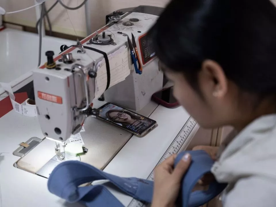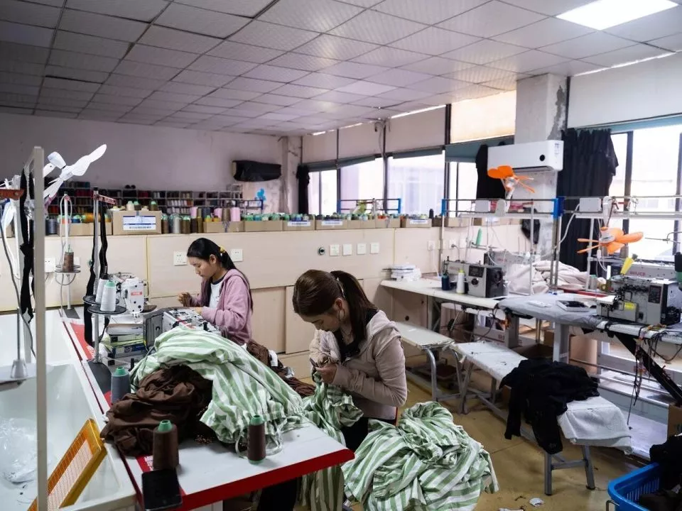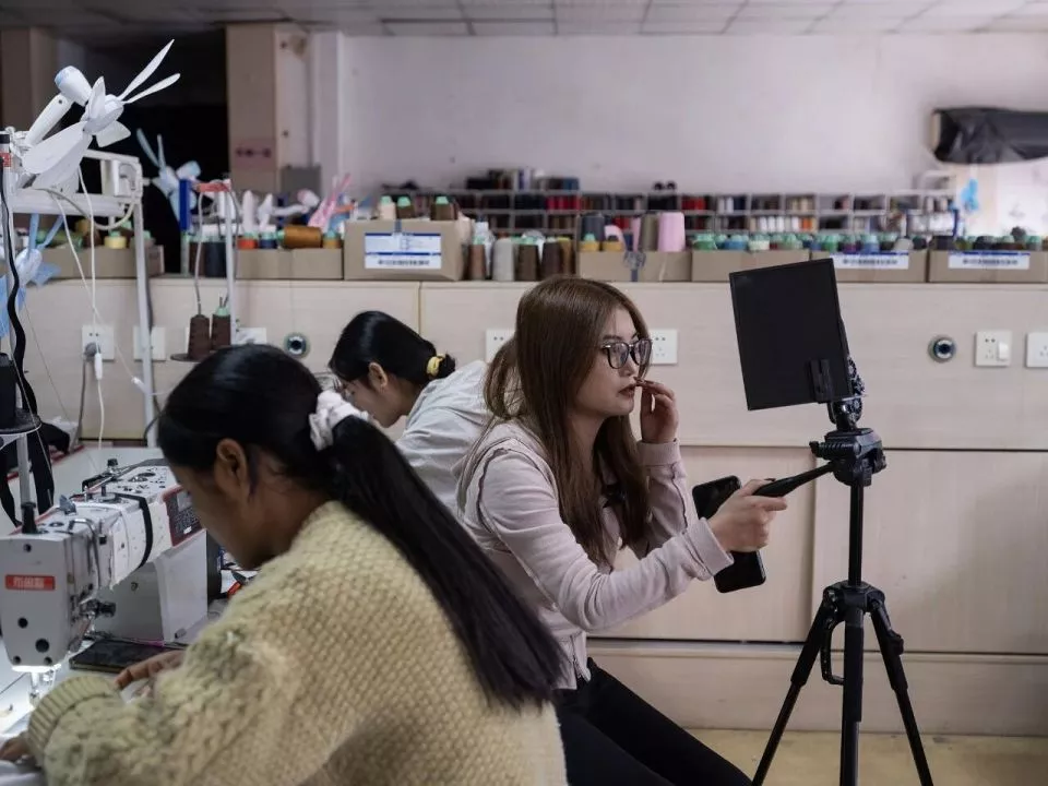下午三点,镜头一亮,直播就开始了。我通常在车间里直播,网友能听到周围机器“哒哒”的声音。我对他们说,这些衣服就是我们在这层楼上一针一线赶出来的。同事们也会把手机放在缝纫机旁,一边做衣服,一边帮我点赞、撑人气。