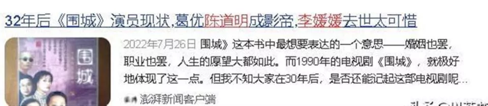 《围城》之后,李媛媛的事业像开了挂。《上海的早晨》里的三姨太、《香港的故事》女主角、《世纪人生》里的董竹君……三座金鹰奖杯摆在家里,她是当时最炙手可热的女演员之一。