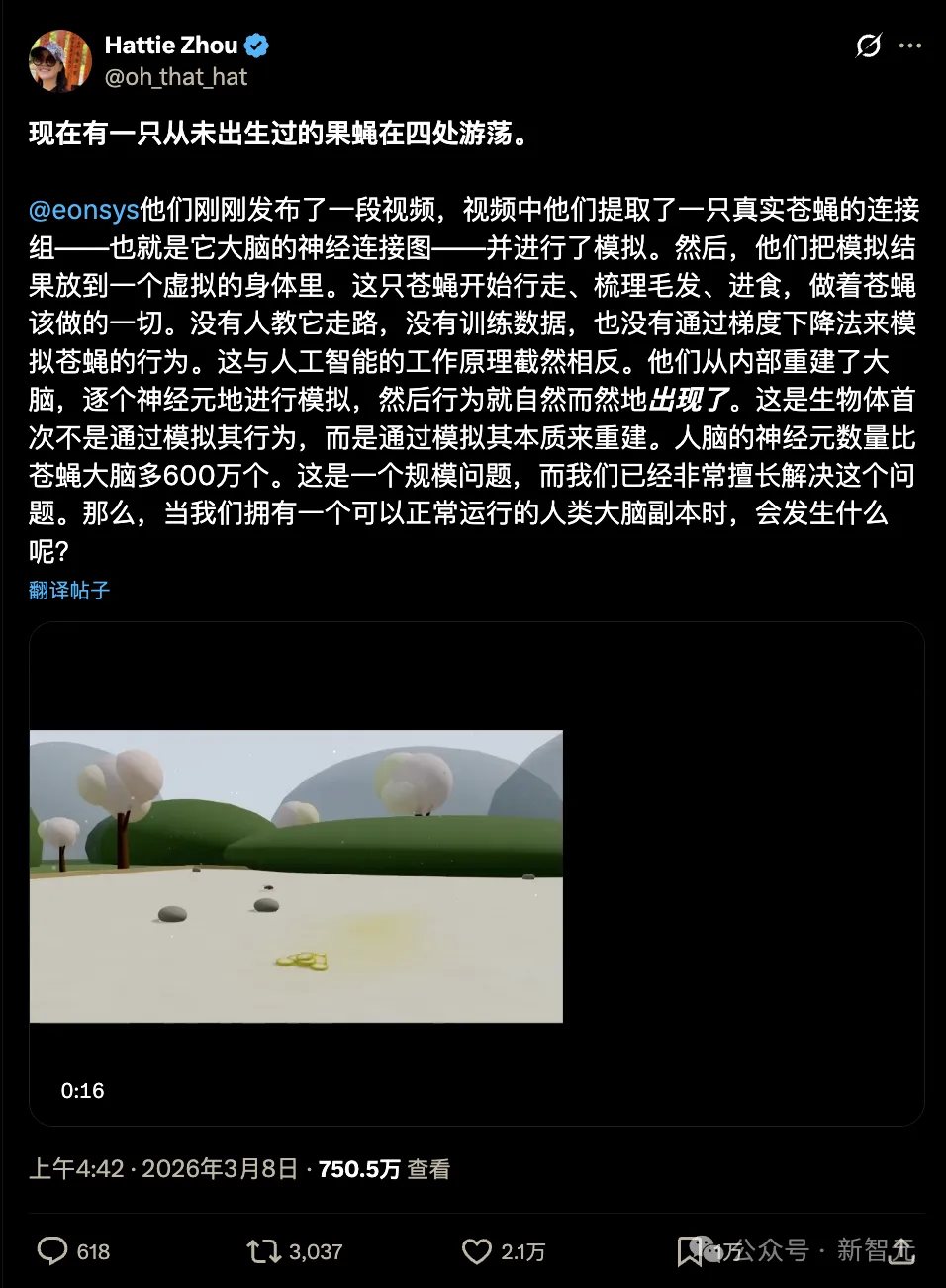 别总光盯着大模型了,首个「多行为大脑上传」已硬核落地!12.5 万神经元的果蝇大脑被完整接入物理引擎,真实生物节律首次自主驱动数字躯壳。全脑模拟正式步入现实,通往人类意识数字化的工程路线图已然愈发清晰。